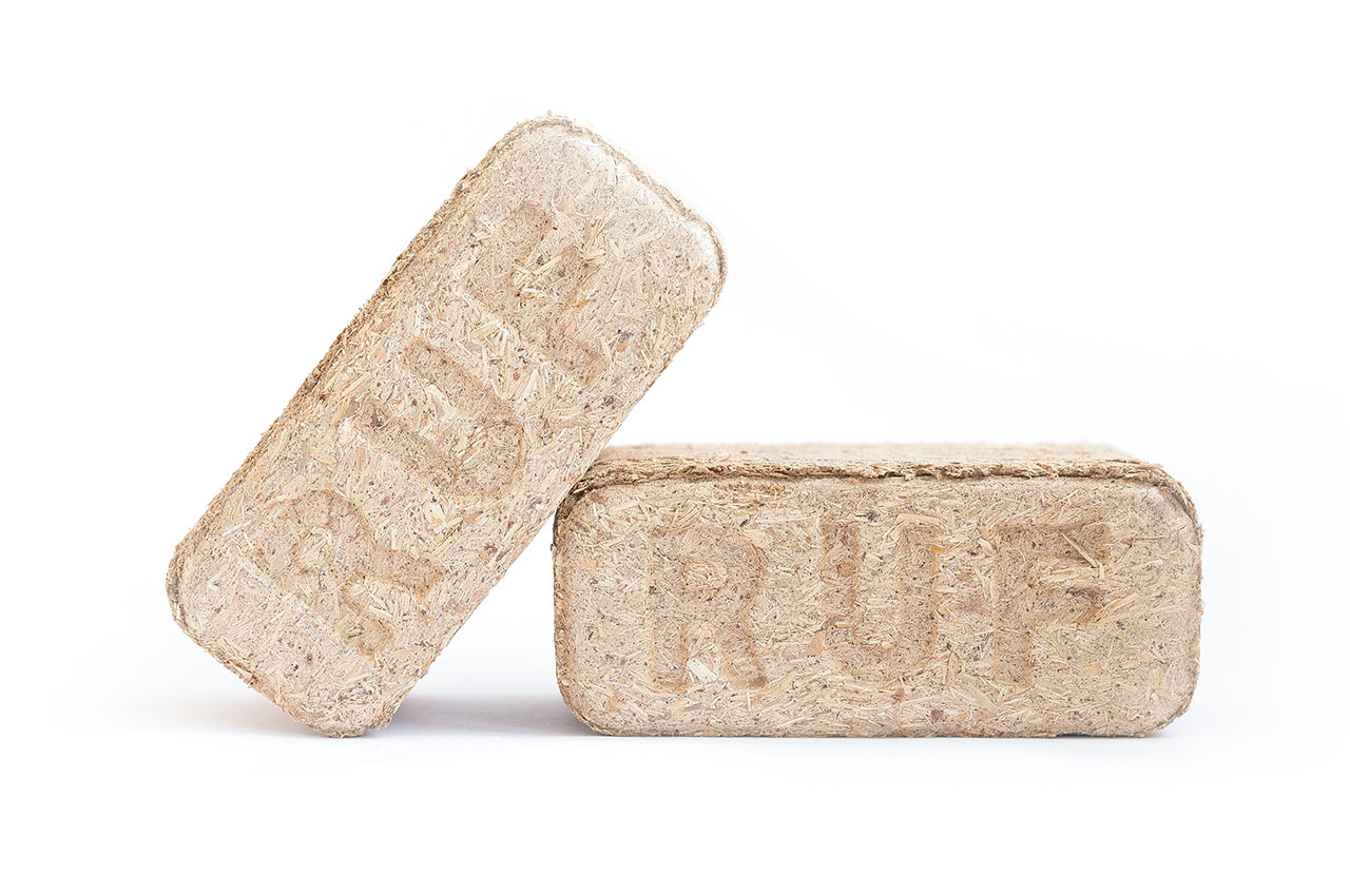 За счет высокой плотности состава брикет обеспечивает длительное время горения, которое значительно больше, чем у других видов топливных брикетов. Топливный брикет RUF на 100% состоит из спрессованной сосновой пыли. Время горения — до 6 часов. Из-за низкого содержания влаги брикеты выделяют больше тепла, чем обычные дрова.